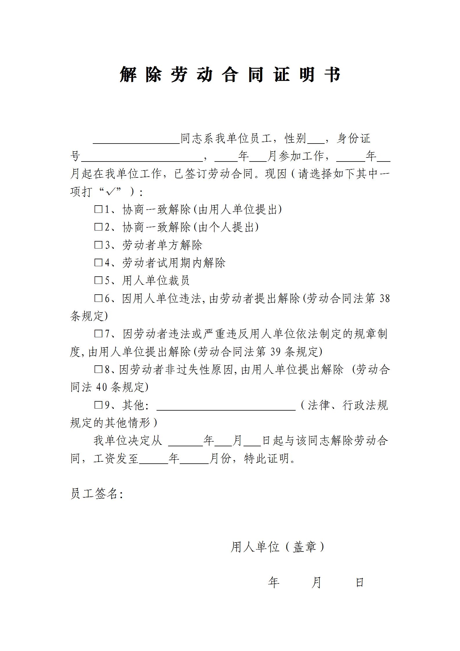 身份证号码: ___________________姓名: _________ 任职我公司______部______岗位,至_____年____月____日,因个人原因离职,经公司慎重考虑准予离职,已办理完毕离职手续。
